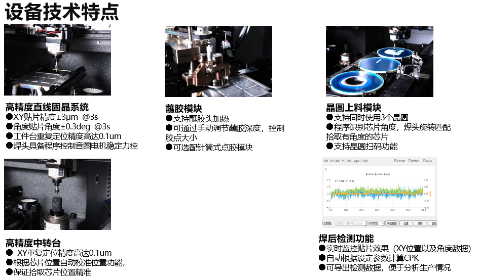±3μm高精度固晶機(jī) ,滿足不同的客戶應(yīng)用場(chǎng)景需要 ,在光通訊、新能源、激光雷達(dá)、航天通訊等領(lǐng)域使用廣泛。